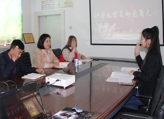 神鷹航空黨支部召開黨員大會一致通過孫學慧同志為預備黨員