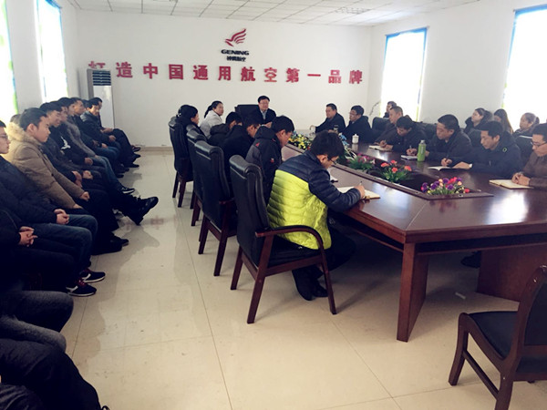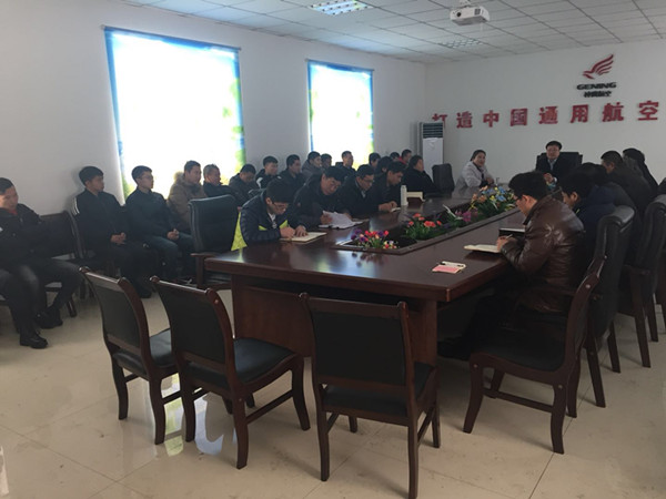 通遼市神鷹通用航空有限公司全體人員在飛機制造廠小會議室召開新年動員大會